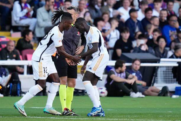 媒体热议,并且大多数信任票都投给卡马温加的同时,首发名单公布:安切洛蒂再次选择了门迪。毫无意外地再次选错了。不是说媒体比教练更明智,而是从过去几场的状况看,门迪打这种高端局会非常吃力。而且自从他和维尼修斯都伤愈,安切洛蒂就不再用弗兰·加西亚,尽管后者一度给皇马进攻提出了新的解法。这令人不解,但记者们也没太多异议,只是认为卡马温加可能更适合对阵巴萨的场景。