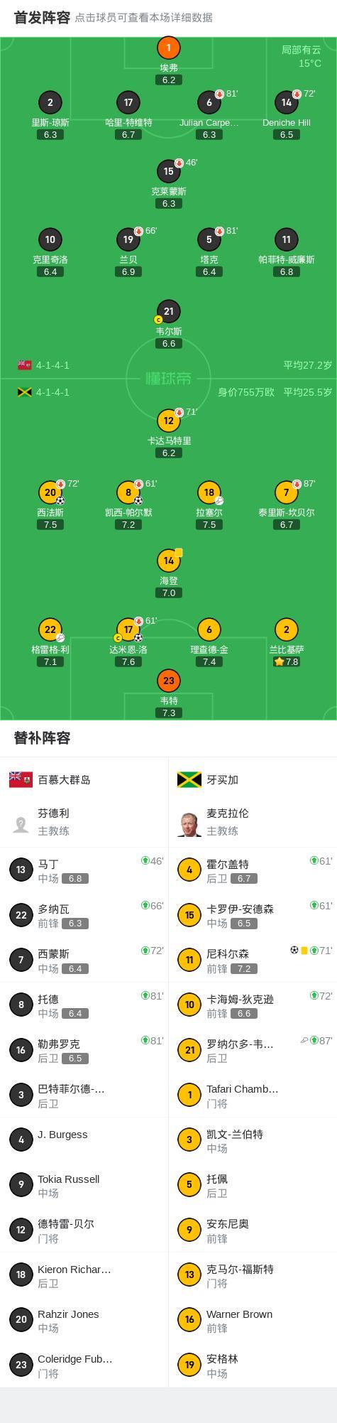 牙买加4-0大胜百慕大群岛,尼科尔森建功,凯西-帕尔默破门